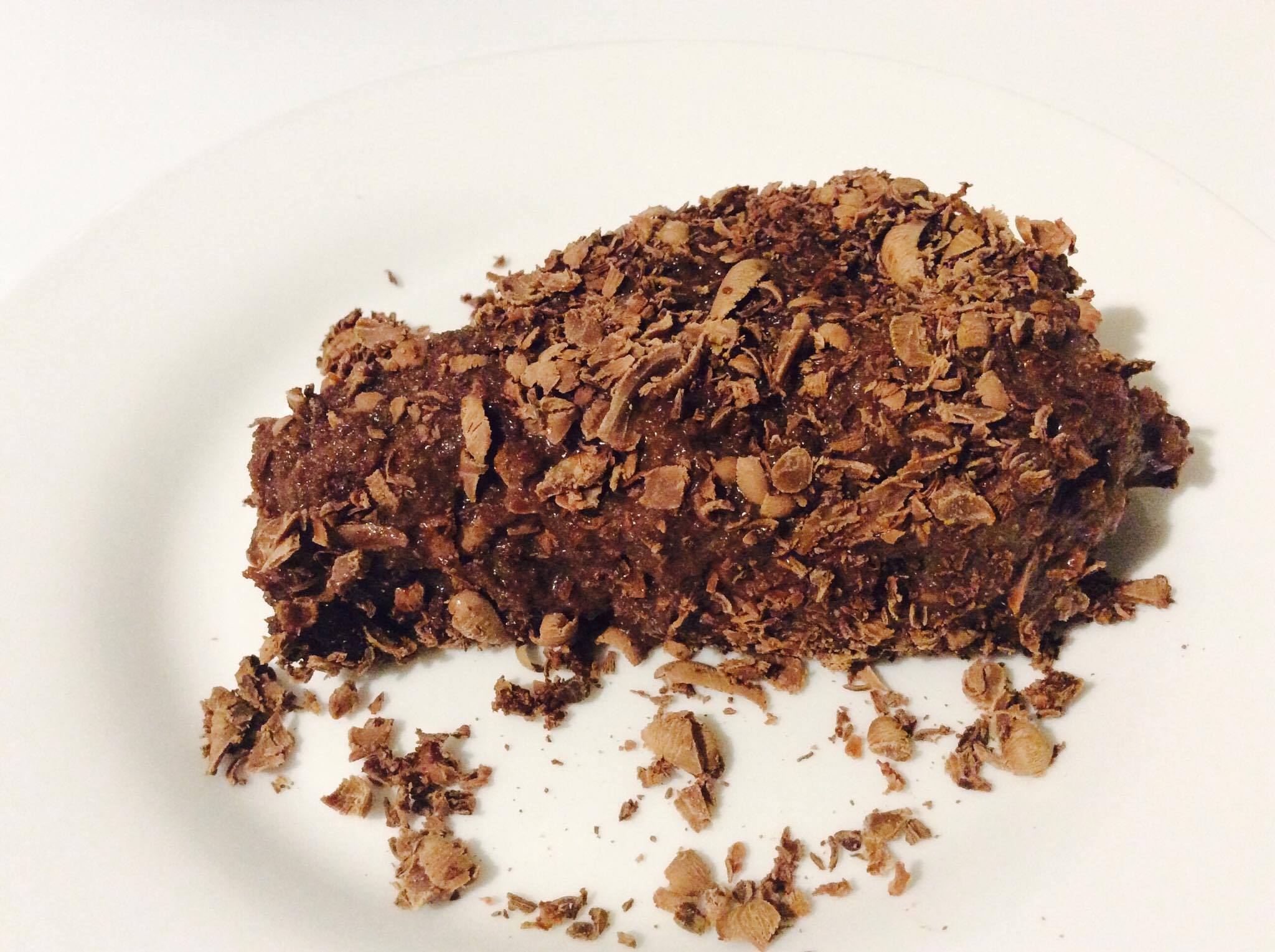- Após o bolo ficar na geladeira, corte o bolo em pedaços e passe nas raspas de chocolate.