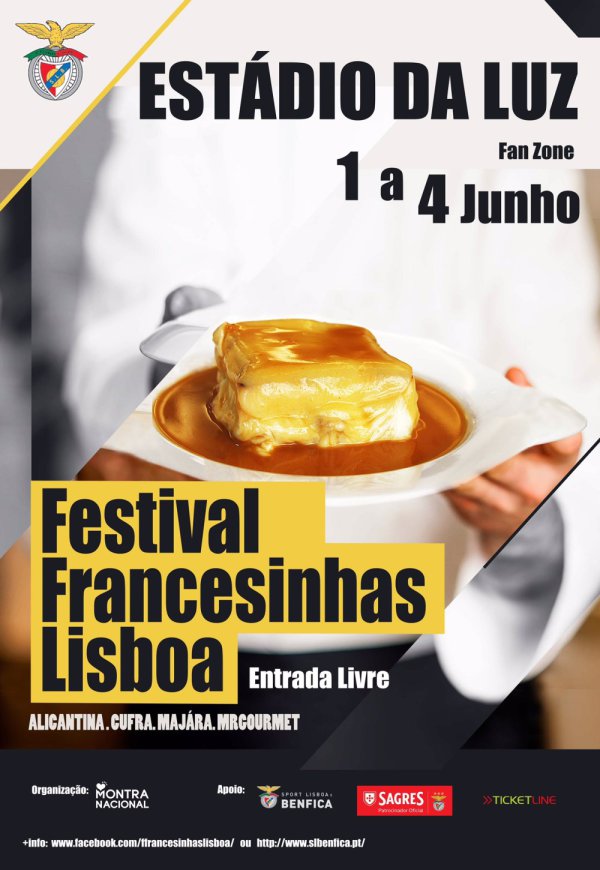 O Festival de Francesinhas de Lisboa começa hoje, dia 1 até o 4 de Junho no Estádio da Luz, as edições anteriores foram realizadas na FIL, no Parque das Nações. O festival esta sendo organizado pela Montra Nacional, em parceria com a Sagres.