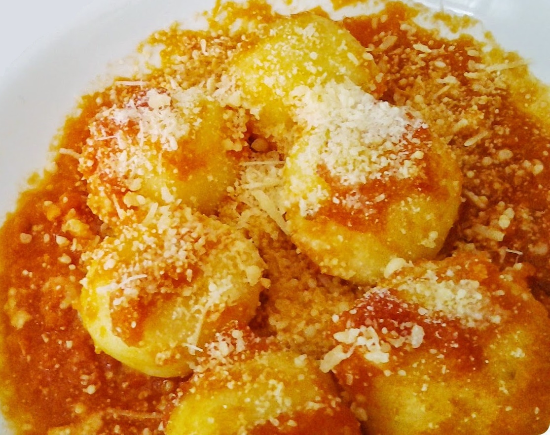 - Arrume os nhoques em refratários com um pouco de molho por baixo para não grudar.